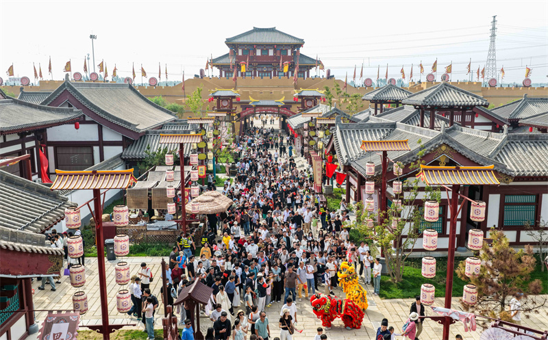 2025年10月1日,国庆假期首日,山东乐陵影视城景区迎来大批游客游览,人气火爆。